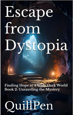 Escape from Dystopia - Finding Hope in a Very Dark World is an allegorical trilogy composed of Book 1: The Journey Begins, Book 2: Unraveling the Mystery, and Book 3: The Road Less Traveled Leads Home.